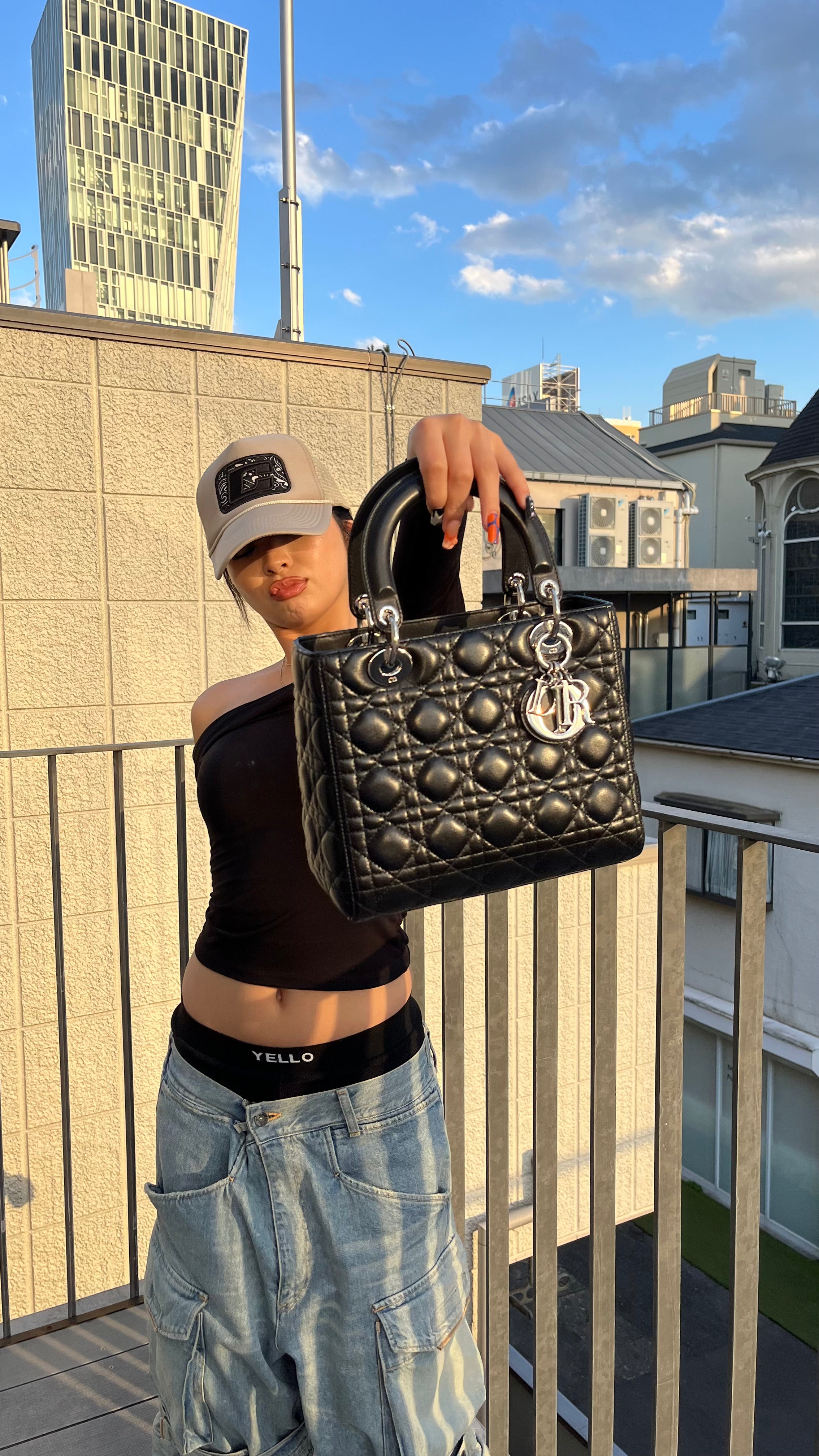 Christian Dior Black Small Lady Dior Playing Cards 2way Shoulder Handbag